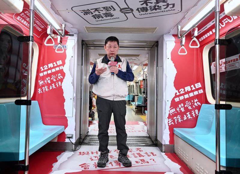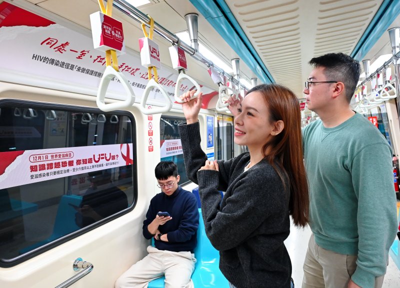 「無懼愛滋、去除歧視」台北捷運主題列車選定人潮最多的板南線行駛,車廂內醒目的文案「同處一室、拉同個手拉環、近距離交談都不會傳染愛滋病毒(HIV)」,正是為了打破最常見的愛滋迷思,讓科學知識進入每個人的日常視野。